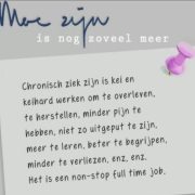 Ik was altijd een bezige bij. Altijd aan het rommelen, bezig met hobby’s, dingen maken, regelen, doen. Thuiszitten is in het begin nog wel te doen, maar op de lange termijn breekt het me op. Ik merk dat ik steeds vaker baaldagen heb. Dagen waarop ik baal van mijn beperkingen, van het wachten, van het gevoel dat ik vaststa.